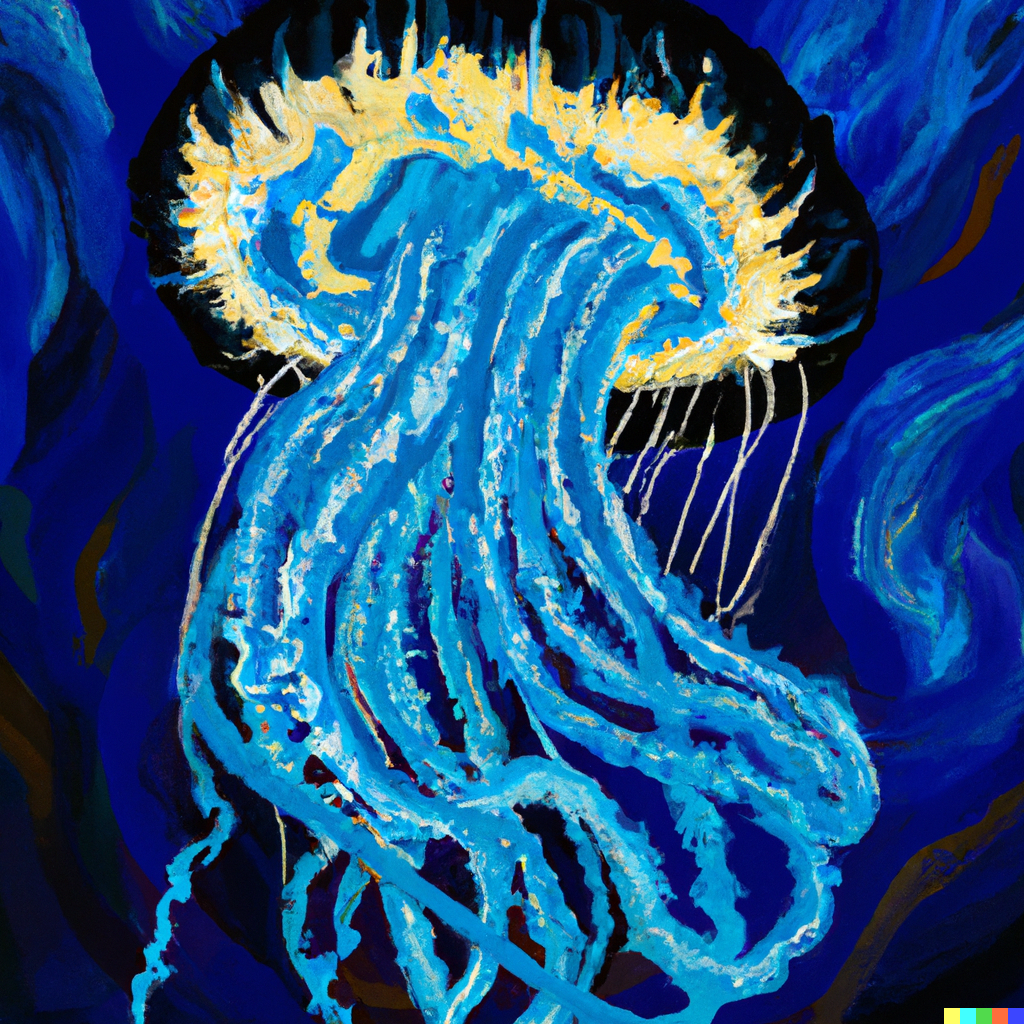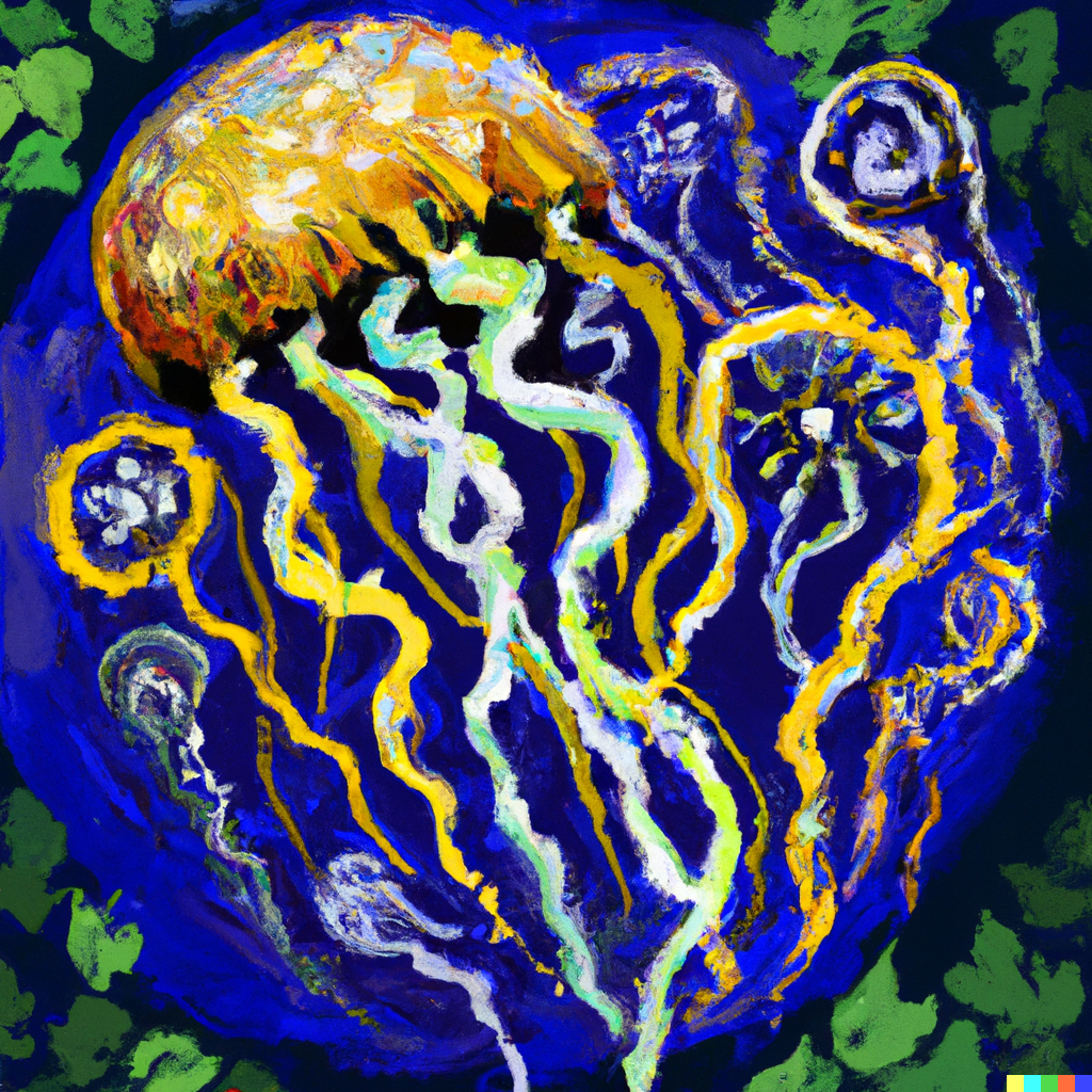 Jellyfish painted in the style of Vincent van Gogh