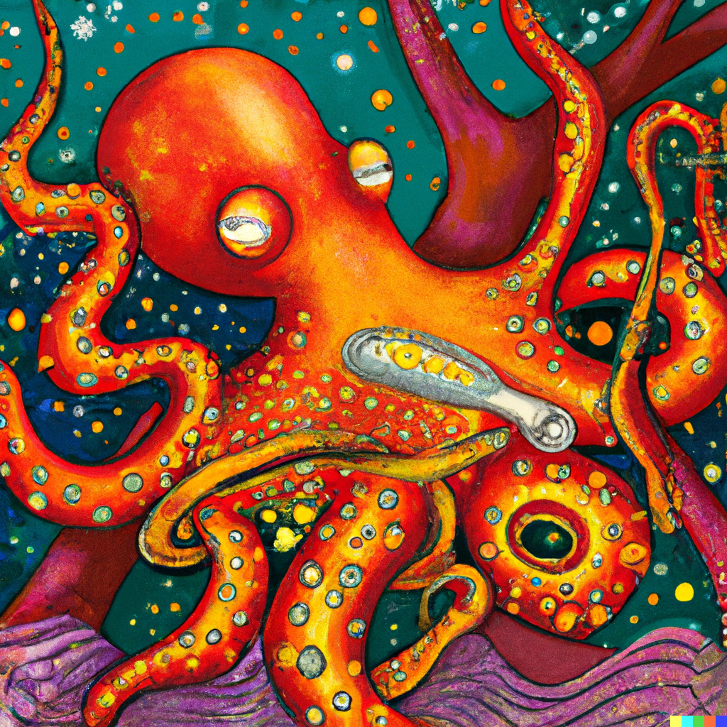 A playful octopus in the style of Gustav klimt artscape