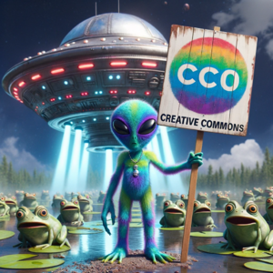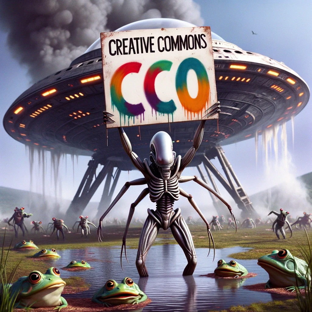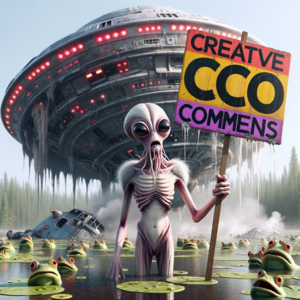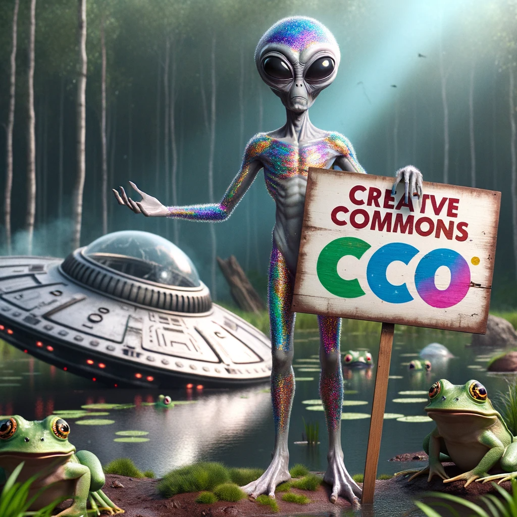 Photorealistic image of an alien being with shimmering skin and elongated limbs, confidently displaying a colourful, hand-painted sign that...