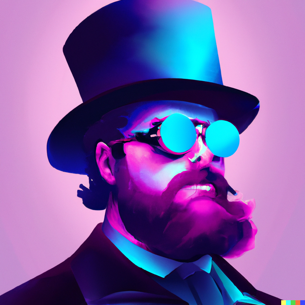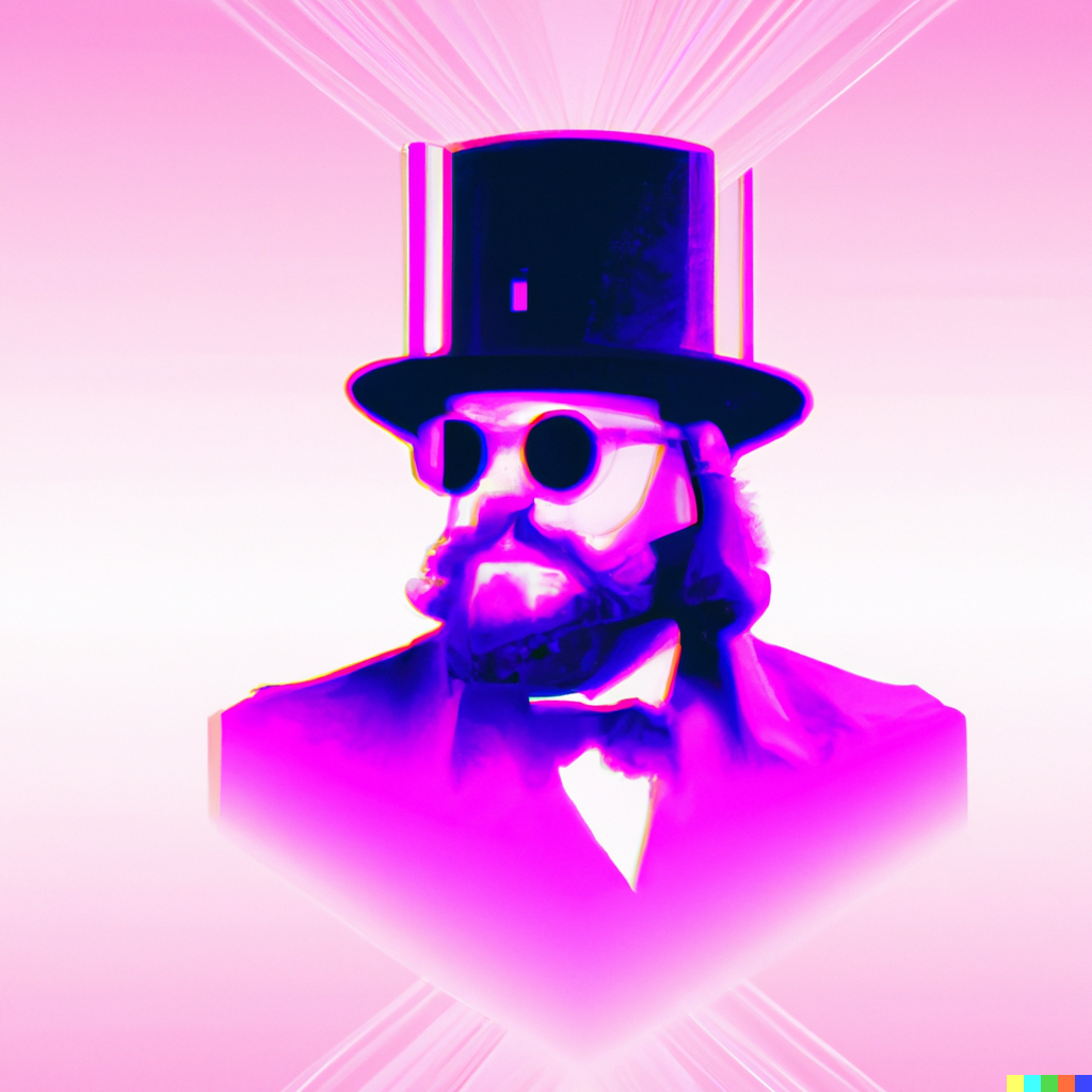 Paul Kruger wearing sunglasses and a top hat, vaporwave 4k digital art