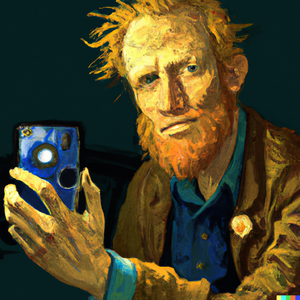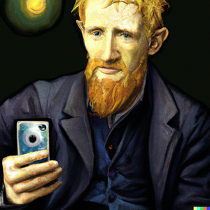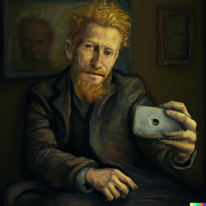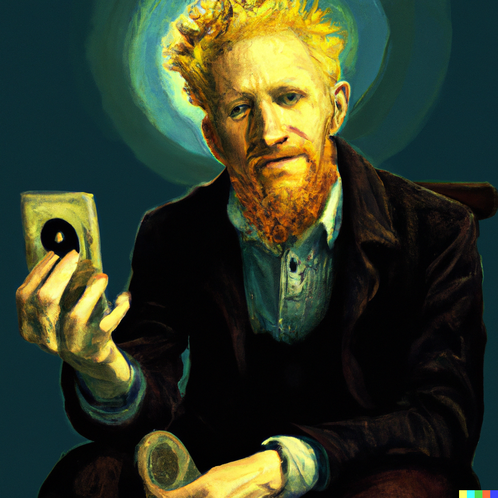 Vincent van Gogh self-portrait, where he is holding an iPhone. DeviantArt Reddit