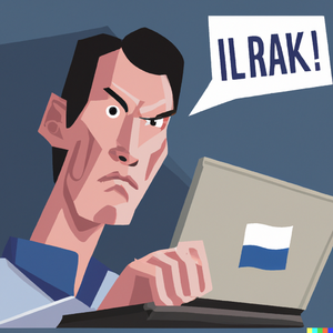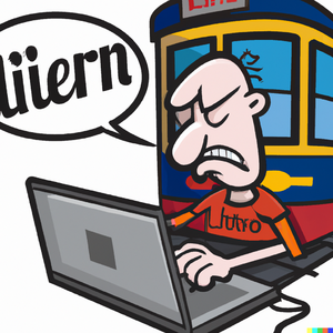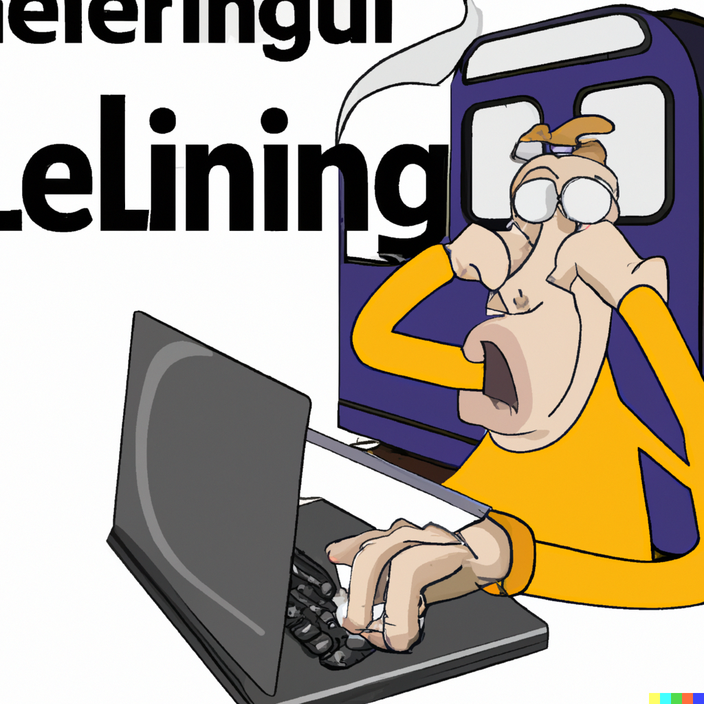 A Flemish computer user frustrated while using a laptop. DeLijn cartoon style Lectrr