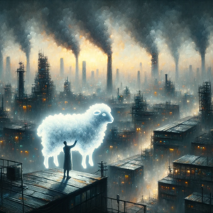 Image based on a description of the themes in Do Androids Dream of Electric Sheep